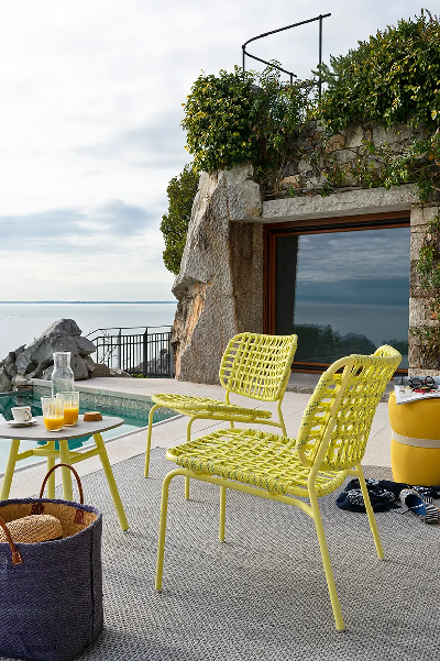 YO! je sinonim za udobnost čak i u ovoj prijatnoj verziji za dnevni boravak. Dostupan je u različitim bojama rama i sedišta, a ima i okice za pričvršćivanje naslona. Napravljene od obojene plastike, one postaju prepoznatljiv element kolekcije, uvek usklađene sa ramom.