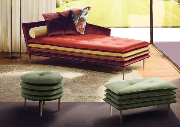 Model Mater Familias je takođe dostupan kao podnožje i nudi pravougaone i okrugle oblike, kao i verzije na klupi. U poređenju sa malom veličinom taburea, klupa je duža i plića verzija koja se može koristiti kao klupa u dnevnim prostorijama ili kao podloga za spavanje. Karakterišu ih tipična slojevita sedišta, ovi proizvodi su dizajnirani da stvore nove konfiguracije koje stvaraju prostor koji prevazilazi funkcionalne podele prostorija, pretvarajući ih u jedinstvenu dimenziju u kojoj se može živeti udobno iskustvo napravljeno od udobnog druženja.