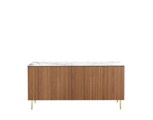 Vertikalna vrata imaju motiv kanelova u dve opcije završne obrade. Staklo, tradicionalno i elegantno, oživljava klasični komod sa savremenim preokretom. Drvo, toplo i sofisticirano, poboljšava materijal, donoseći novu taktilnu dimenziju životnom prostoru.