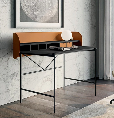 Radni sto napravljen od obloženog metala i tapaciranih pregradnih panela. Opremljen fiokom ispod ploče i utičnicom za kablove. Sa svojim elegantnim panelima od regenerisane kože, BIBLIO će vam pomoći da ponovo stvorite sopstvenu udobnu kancelariju u udobnosti svog doma. Sa elegantnim metalnim okvirom i drvenom pločom stola sa praktičnom fiokom, ovaj sto je nesumnjivo savršen za svakoga kome je potreban radni prostor kod kuće.