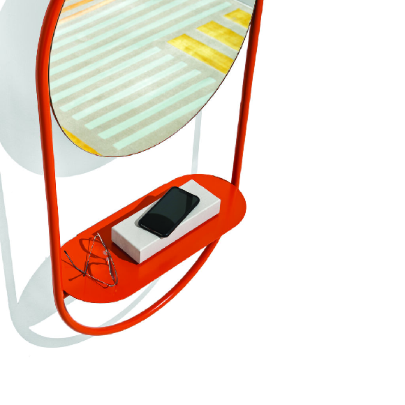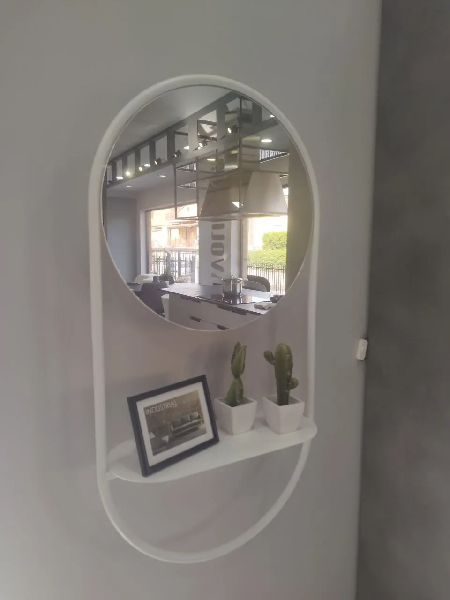 Ulazno ogledalo sa cevastim metalnim ramom. Komplet sa policom.