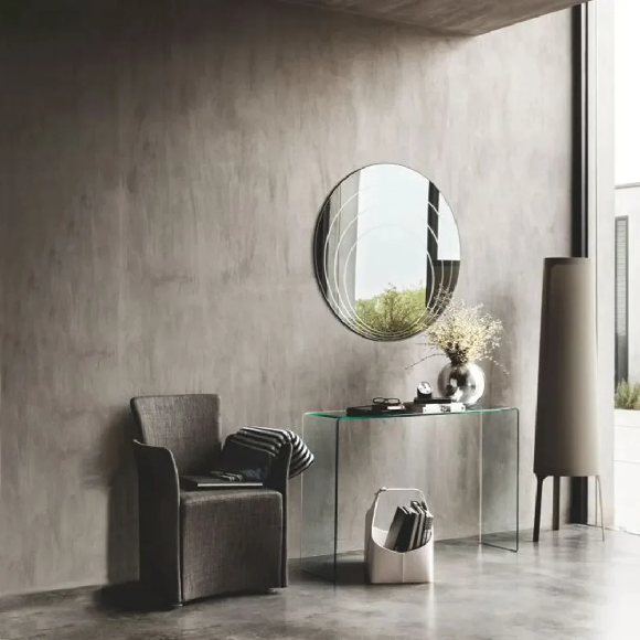 Okruglo ogledalo LUNE sa dekoracijom koncentričnih krugova. Montira se na zid. LUNE je veliko, okruglo ogledalo sa dimljenom osnovom, ukrašeno uzorkom koncentričnih krugova različitih veličina ugraviranih na površini. Dinamično, emotivno i sa snažnim estetskim uticajem, savršeno je za osvetljavanje ulaza, dnevnog boravka ili spavaće sobe svojim odsjajima.
