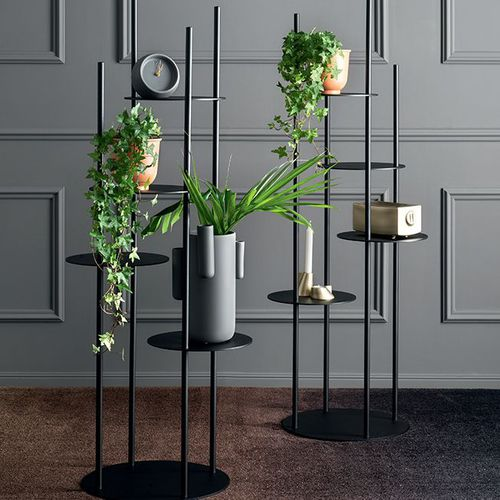 Polica za držanje predmeta u kružnom obliku na nekoliko nivoa. Napravljena u potpunosti od lakiranog metala. Ovaj dizajnerski komad daje novi pogled na dodatke za nameštaj. KRUGOVI su veoma originalan način da vaše najvažnije stvari držite na vidiku, a da ne zauzimate previše prostora. Ova stubasta polica od cevastog metala ima 4 kružne police od lima. Napravljene da se uklapaju sa stubom, kružne police su postavljene na različitim visinama, a cevaste šipke takođe dolaze u različitim visinama, stvarajući vizuelno upečatljiv aranžman.