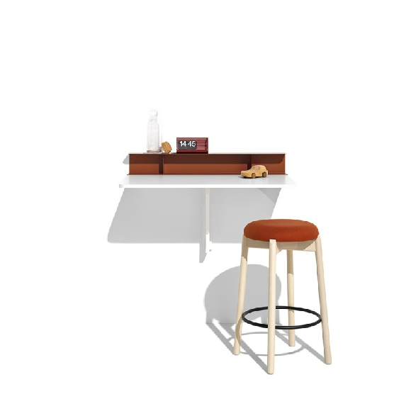 Quadro sto za montažu na zid. Pravougaona ploča stola koja se sklapa po potrebi. Quadro je drveni sto koji se može montirati na zid na željenoj visini pomoću posebnih nosećih vijaka. Svestrana i funkcionalna, pravougaona ploča stola može se koristiti kao radna površina ili za brzi ručak. Kada je sklopljena, zauzima prostora koliko i polica.Sklopivi sto omogućava optimalnu organizaciju prostora, savršen je za malu kuhinju ili studio stan. Ima sklopivu policu od lima sa vertikalnim ojačanjima koja se pričvršćuje na vrh sklopivog stola.
