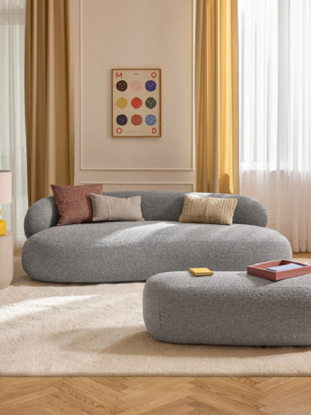 Kolekcija sofa Alba uključuje i trosed i dvosed. Njen dizajn slavi lepotu krivine — definišući element koji oblikuje njenu gracioznu siluetu i prepoznatljiv stil.