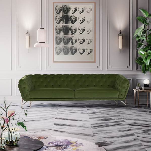 Sofa Art Noveau se radi u više dimenzija. Elegantan spoljašnji profil i tanke noge naglašavaju nagnuti oblik školjke. To je sofa izuzetne udobnosti i sofisticirane elegancije.