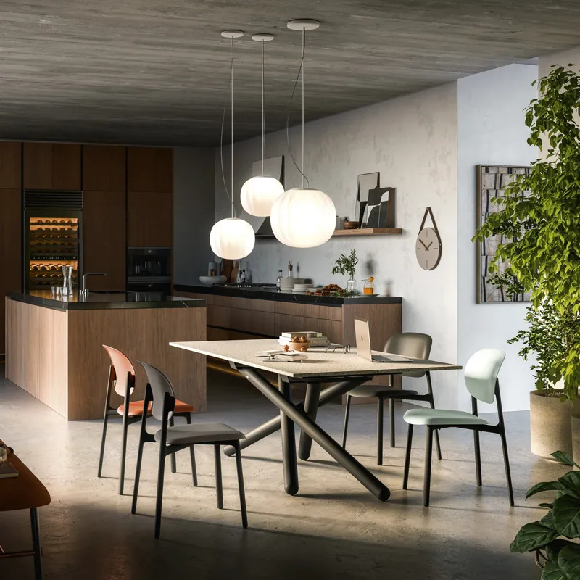 Noge stola Duel, poput prevelikih vrhova folije, presecaju se i uklapaju u savršenoj arhitektonskoj interakciji kružnih cevi spojenih na krajevima. Ploče stola, i fiksne i izduvne, dostupne u različitim veličinama i završnim obradama, oslanjaju se na metalnu bazu sa praškastim premazom, pogodnu za upotrebu u zatvorenom i na otvorenom prostoru. Skulpturalni dizajn se igra kontrastima između dinamičnosti osnove i stabilnosti horizontalnih linija, između asertivnog prisustva pojedinačnih nogu i suštine ploče stola. Duel je savršen sto za stvaranje prostora za prijatelje i porodicu i iznenađenje uvek originalnim stilom.