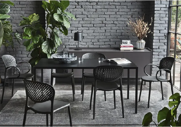Fiksni sto IRON ima tanak dizajn, napravljen je u potpunosti od metala i pogodan je za upotrebu na otvorenom. Ima kvadratne noge i strukturiranu ploču debljine samo 30 mm.
