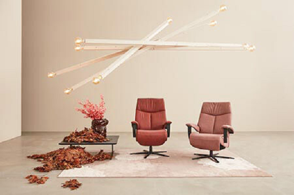 Ležaljka sa integrisanim naslonom za noge i podesivim naslonom.U 3 veličine (S/M/L) i 2 širine.7 osnovnih okvira: zvezdasta baza, drveni okretni prsten ili osnovna ploča (metalna, drvena, pokrivena).Podešavanje ugla nagiba naslona za glavu.Tapacirani nasloni za ruke.Okretanje za 360°.