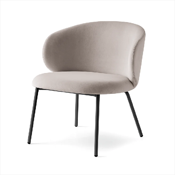 Fotelja TUKA od metalnih cevi. Školjka sa širokim, obuhvatajućim naslonom i zaobljenim sedištem, dostupna u 100% recikliranom polipropilenu ili tapacirana i jastučasta.