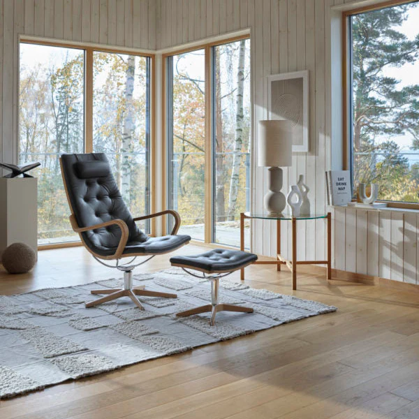 Life okretna fotelja ima izuzetnuudobnost sedenja i elegantan, minimalistički dizajn. I u verzijama od tkanine i u kožnim verzijama, Naslon Life rotirajuće fotelje ima stilsko prošivanje. Naslon za glavu je uvek tapaciran izabranom tkaninom i bojom. Elegantno hrastovo drvo, u kontrastu sa modernim hromiranim ili mat satenskim metalom, ističe sofisticirani dizajn Nilsa Gamelgarda. Za dodatnu udobnost, dostupan je opcioni tabure za noge u dizajnu koji dopunjuje rotirajuću stolicu (ako se izabere zvezdasta osnova, tabure će imati osnovu u obliku slova X u odgovarajućem materijalu i boji). Uprkos čistom, modernom dizajnu, detalji su ono što fotelju Life čini zaista posebnom. To uključuje prošivene detalje na naslonu i sedištu, kao i prepoznatljivo oblikovane naslone za ruke. Sve u svemu, Life je sve samo ne bezizražajna; umesto toga, impresionira svojim elegantnim izgledom i udobnošću. Funkcija naslona je takođe dostupna kao opcija za udobno opuštanje.