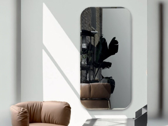 Dizajnirano da istakne staklo, ogledalo Bevel je nastalo iz proučavanja obrade bronzanog staklenog ogledala. Meki oblik je naglašen kosim ivicama, koje su ponekad prekinute, ističući njegove krivine. Igra refleksija i krivolinijskih oblika karakteriše elegantnu figuru. Dostupno je u kvadratnim ili pravougaonim veličinama i u dve varijacije boja. Pravougaoni model se može postaviti i vertikalno i horizontalno.
