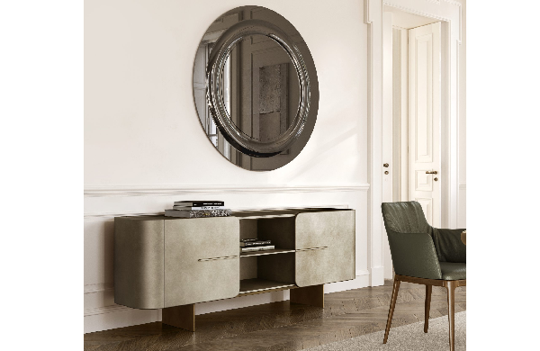 Emily je kristalno ogledalo sposobno da doda dašak kompletnosti kućnim ili radnim prostorima.Savršeno kada se postavi iznad elegantnog i prefinjenog komoda.