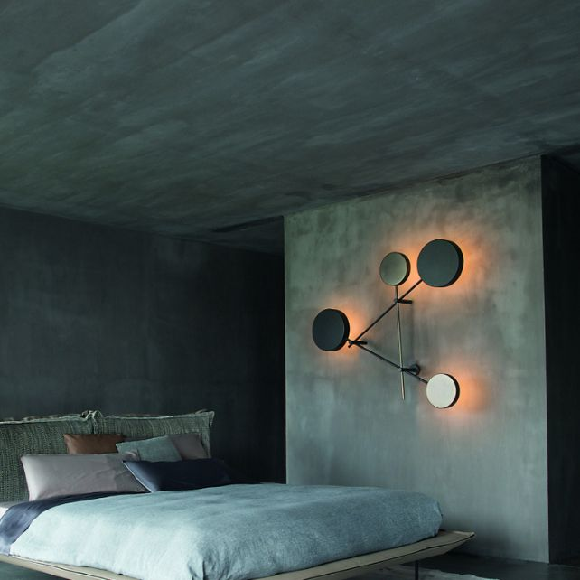 Sa svojim linijama i krugovima, snažnim geometrijskim stilom i referencom na Kandinskijev stil, Irida je skulptura koja, kada se osvetli, stvara jedinstveno okruženje. Metalni diskovi lampe su u mikasno smeđoj i titanijumskoj boji.