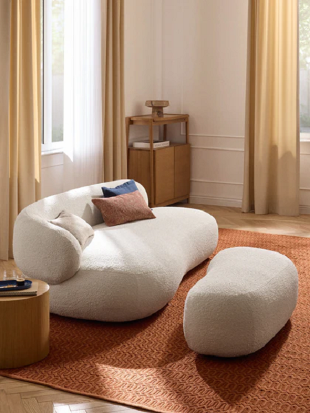 Kolekcija sofa Alba uključuje i trosed i dvosed. Njen dizajn slavi lepotu krivine — definišući element koji oblikuje njenu gracioznu siluetu i prepoznatljiv stil.