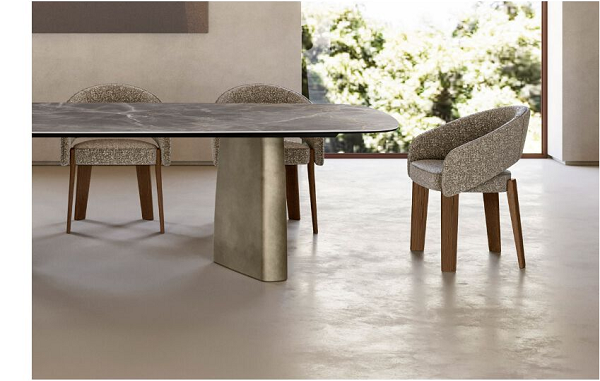 Trpezarijska stolica Fur se lako prilagođava. Tapacirano sedište i naslon dostupni su u širokom spektru tkanina, kože i eko kože. Noge od jasenovog drveta dolaze u nekoliko različitih nijansi za idealan dodatak. Savršena za trpezarije, salone ili sofisticirane enterijere.