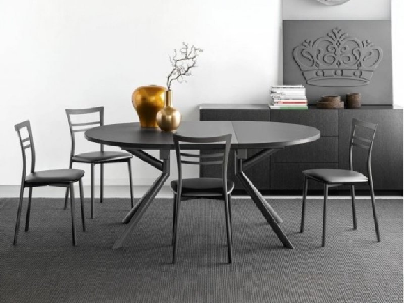GIOVE sto na rasklapanje, metalna baza sa okruglom pločom od drveta, drvo-keramike ili drvo-stakla. Fiksna centralna metalna baza sa četiri kose eliptične noge i mehanizmom za sklapanje sa centralnim produžetkom koji se slaže sa bazom. Njegove jednostavne, čiste linije čine ga pogodnim za svaki životni prostor.