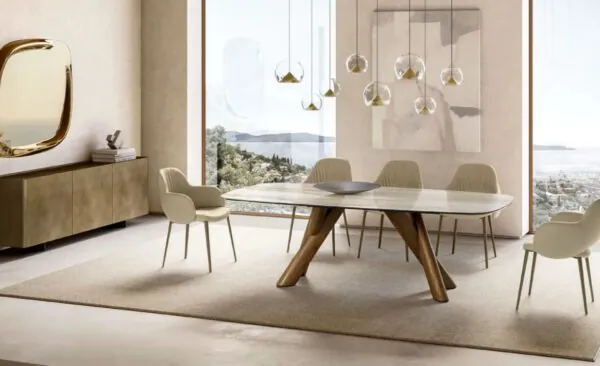 CANOVA sto je strukturirani dizajnerski sto koji spaja eleganciju i prisustvo, dodajući prepoznatljiv dodir svakom enterijeru. Dizajniran od strane Luke Rokadadrije, CANOVA se bez napora integriše u savremene ambijente, nudeći osećaj topline i formalne harmonije.