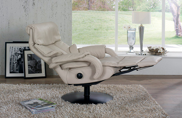 Ležaljka sa integrisanim naslonom za noge i podesivim naslonom.U 3 veličine (S/M/L) i 2 širine.7 osnovnih okvira: zvezdasta baza, drveni okretni prsten ili osnovna ploča (metalna, drvena, pokrivena).Podešavanje ugla nagiba naslona za glavu.Tapacirani nasloni za ruke.Okretanje za 360°.