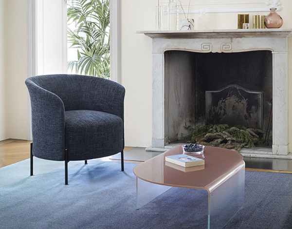 Privlačno mekana i elegantna fotelja za odmor. Sedište stolice ima elastičnu mrežnu strukturu koja podržava poliuretan, pružajući udobnost i izdržljivost. Tajna iza vitkog dizajna i harmoničnih krivina je naslon napravljen od presvučenog i tapaciranog poliuretana hladne pene. Struktura je postavljena na 4 izložene metalne noge sa donjim delom u sjajnoj mesinganoj ili crno-niklovoj završnoj obradi, što stvara elegantan osećaj.