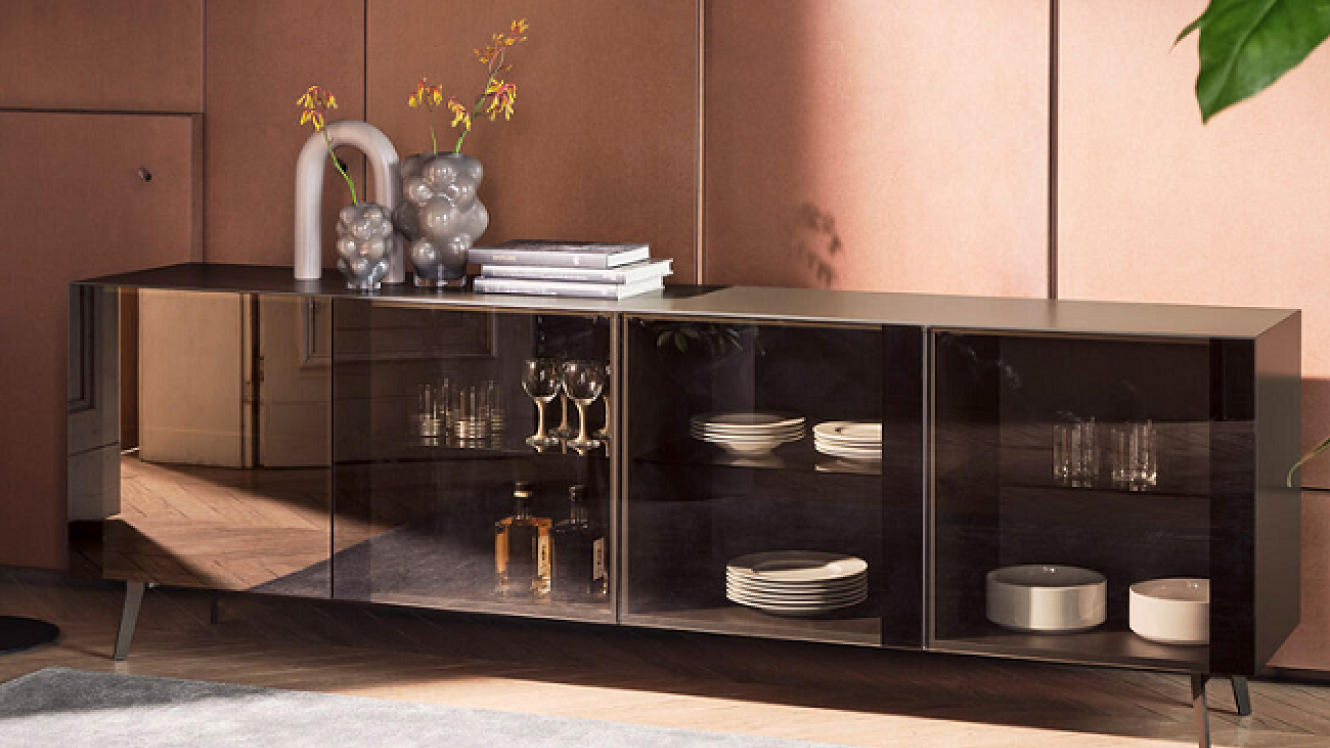 Elegantna i minimalistička, staklena vrata su redizajnirana u bronzanoj i dimljenoj verziji, sa opcionim unutrašnjim osvetljenjem. Dizajnirana za savremeni dnevni boravak, Kristal podseća na antičke komode, gde su posuđe i stakleno posuđe bili ostavljeni na vidiku.