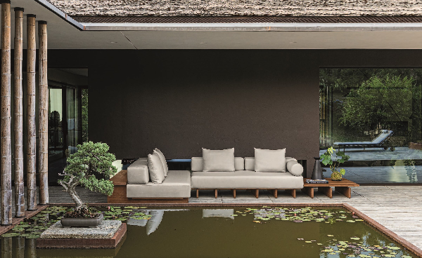 Santos baštenska sofa je inspirisana prirodom.Ima dinamičan oblik.Koriste se otporni materijali tretirani da budu zaštićeni tokom cele godine. Odličnog je dizajna ,ali prioritet je funkcionalnost.