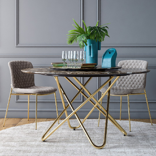 Jedan prepoznatljiv detalj koji objedinjuje sve komponente u kolekciji je karakteristika na naslonu koji je elegantan nastavak metalnih nogu. Ovaj upadljivo moderan element govori o nekonvencionalnom dizajnu između sedišta od tkanine i okvira koji nosi težinu. Njena elastična podloga i izuzetni detalji na metalnom okviru čine ovu stolicu Love delom svakodnevnog luksuza.