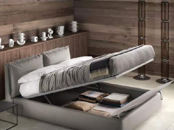 Bezvremenska elegancija za ovaj krevet sa kutijom, savremenog dizajna ,lako se prilagođava svakom kontekstu nameštaja, uz pomoć odgovarajuće tkanine. Ovaj krevet je opremljen sa dva mekana jastuka za odmaranje sa čvrstom drvenom potporom, pričvršćena za uzglavlje i lako se pomeraju u željeni položaj za opuštanje. Krevet je dostupan od jednokrevetne do dvokrevetne verzije, u različitim širinama i sa osnovom dužine 190 ili 200 cm. Potpuno prilagodljiv u presvlakama, dostupan je sa dve različite vrste mehanizma za skladištenje: klasična verzija sa kompasnim otvaranjem i verzija „Rise“ sa horizontalnim sistemom za podizanje dušeka, što takođe olakšava operacije nameštanja kreveta. Dostupan sa i bez prostora za odlaganje.