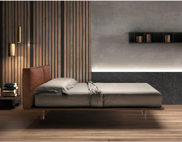 Stilski, tapacirani krevet sa samonosećim ortopedskim krovom, karakteriše ga lagan dizajn istaknut providnim nogama i ramu kreveta smanjene debljine koji deluje kao da visi; čiste i minimalističke linije koje ističu veliko podstavljeno uzglavlje sa dva udobna jastuka.