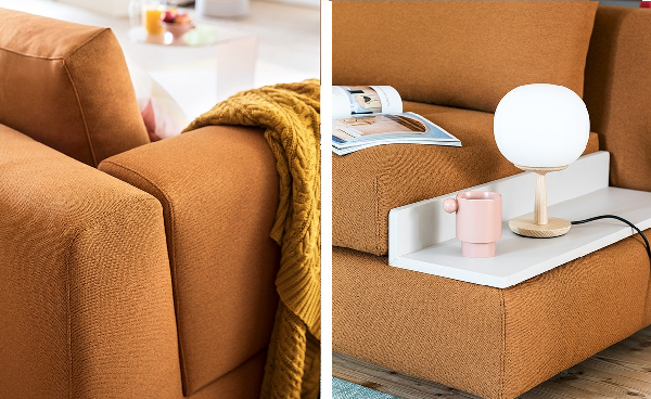 Sofa Layla je modularna i nudi brojne kombinacije. Ima veliki izbor materijala i boja.